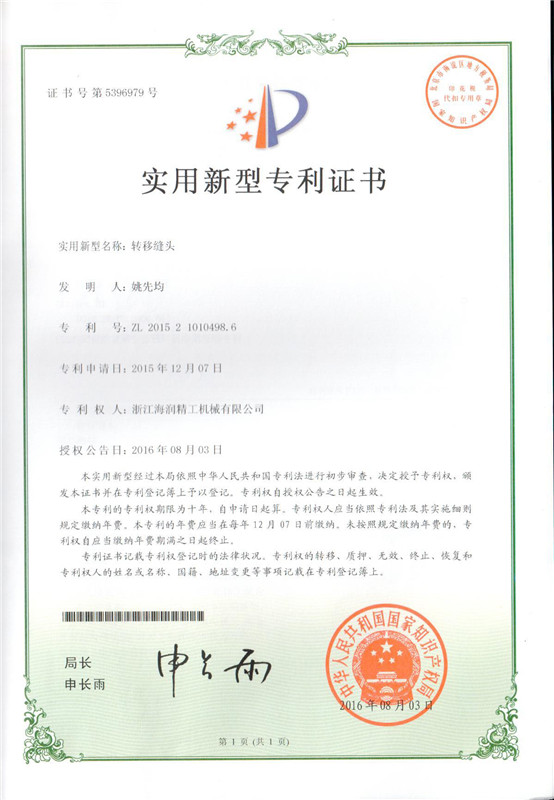 實(shí)用新型專利-轉(zhuǎn)移縫頭